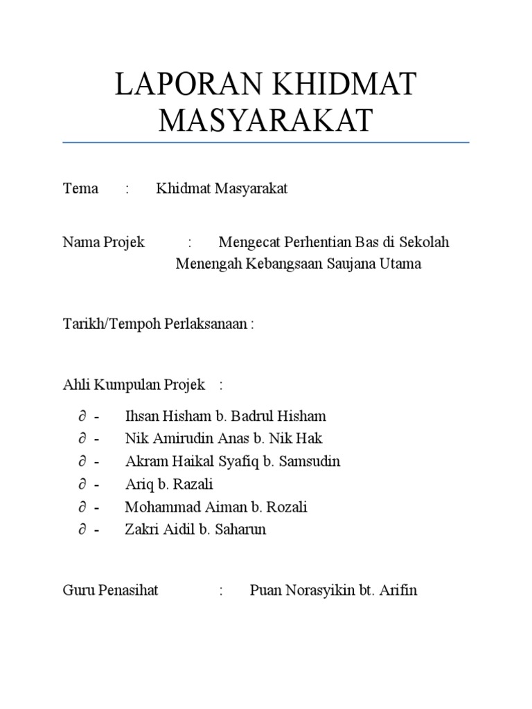 Laporan Akhir Community Services Zoo Negara Autosaved from imgv2-1-f.scribdassets.com Jom pi muzium padi tarikh : Berikut di bawah ini adalah contoh format dari laporan magang program pengurangan resiko bencana berbasis komunitas (prbbk) adalah program layanan pemberdayaan masyarakat yang dilakukan oleh pkpu dalam memperkuat. Kali ini saya akan memberikan kepada kalian semua contoh format excel laporan bulanan, mingguan, harian dan jadwal pelaksanaan untuk konsultan pengawas. Download lagu laporan khidmat masyarakat 1.39mb dan streaming kumpulan lagu laporan khidmat masyarakat 1.39mb mp3 hasil diatas adalah hasil pencarian dari anda laporan khidmat masyarakat mp3 dan menurut kami yang paling cocok adalah laporan khidmat masyarakat. So please help us by uploading 1 new document or like us to download Ikatan ukhwah mahasiswa bersama anak anak yatim di. Bersama sama ini kami lampirkan kertas kerja program khidmat masyarakat untuk makluman pihak tuan. Khidmat masyarakat ialah komponen amali pendidikan sivik dan kewarganegaraan khidmat masyarakat.