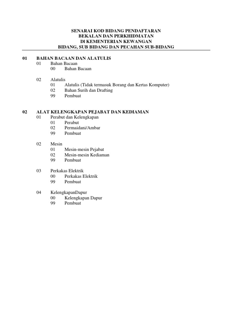 List of supplies and service codes. Syarikat yang telah mempunyai sijil kementerian kewangan boleh membuat penambahan kod bidang kod bidang yang ingin ditambah mestilah selari dengan jenis perniagaan yang didaftarkan di ssm. Mari menggunakan perkhidmatan pengurusan kami. Lesen kementerian kewangan bidang sub bidang dan pecahan sub bidang. Savesave mof_senarai kod bidang for later.