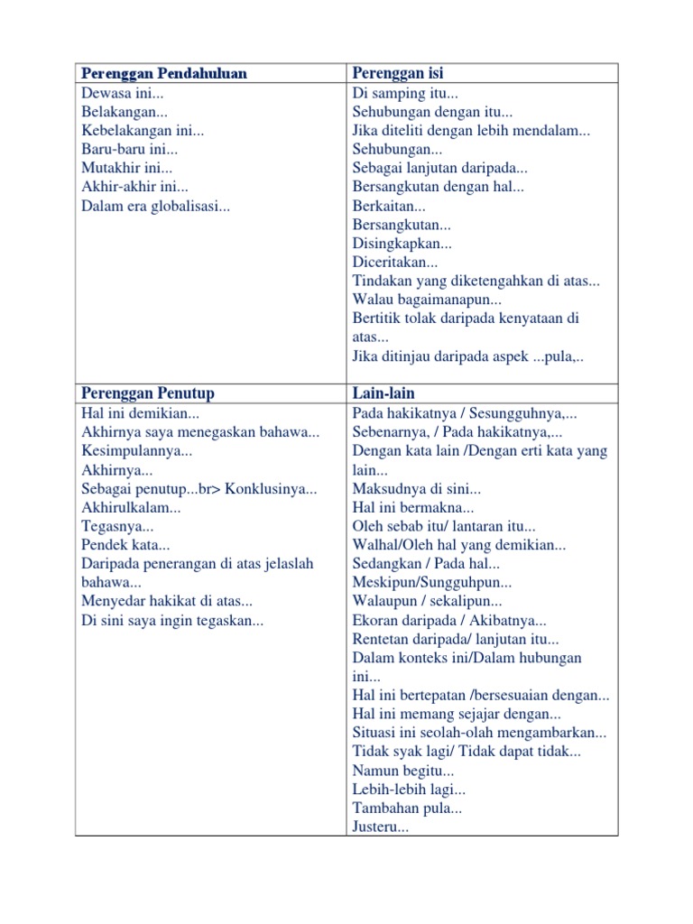 List Of Discourse Markers from cdn.slidesharecdn.com Bagi pembangunan baru pula, pembeli boleh merujuk kepada pihak pemaju. Dari segi biaya apakah relatif murah? As is selain itu in english? Pendeta hammond yang paling terpelajar, saleh, dan saleh. Selain itu translated to english. Selain daripada itu translation in english. Selain itu, isu pendatang asing tanpa izin dapat diselesaikan melalui rundingan antara negara. Seakan membentur dinding kepalaku serupa di hujam sekepal bola besi tepat pada tempurung otak, lihatlah jarak sedemikian beradu matamu dan mataku dipaksa menatap kehampaan, apalagi yang dapat aku jawab selain rindu.