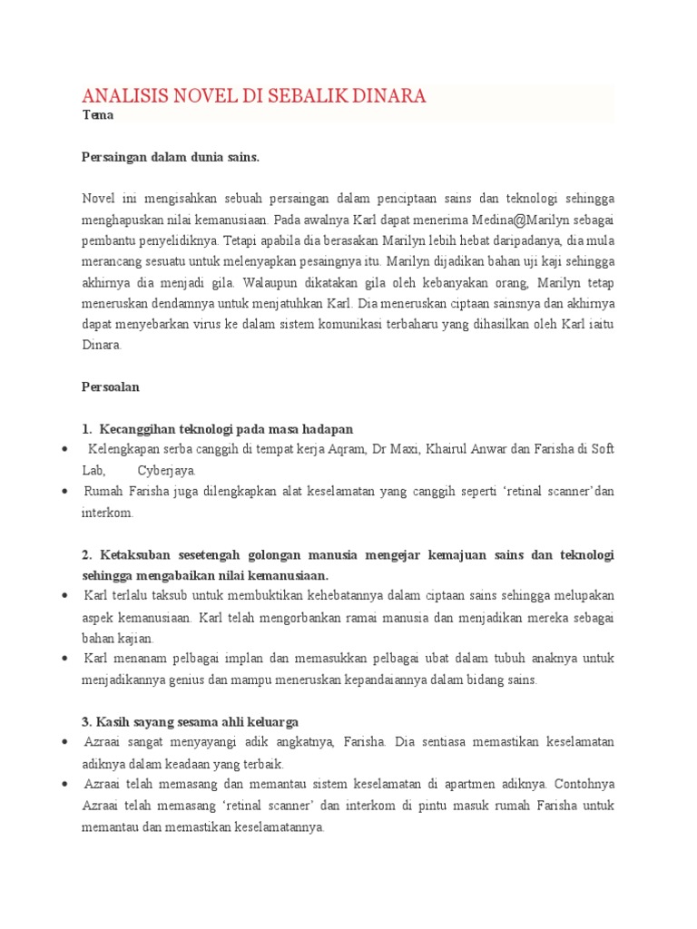 Farisha mendapat tahu abangnya azraai mengalami masalah jantung. · seorang gadis yang genius dan pakar dalam penggodaman it. Silakan klik kim老师 komsas 最强解析 之 tingkatan 4 novel:di sebalik dinara【spm 得分技巧 考生必看】 untuk melihat artikel selengkapnya. Aqram telah menegur farisha dengan sopan semasa mereka bertemu di. Buktinya, menurut pandangan aqram, farisha agak cantik dan bersopan santun. Perkongsian novel di sebalik dinara oleh bvellcen darrel. · watak utama dalam novel di sebalik dinara. Novel di sebalik dinara : Di sebalik dinara tema persoalan mp3 & mp4. Antara peristiwa yang menggambarkan plot permulaan ialah farisha berada di lapangan terbang senai untuk pulang ke kuala lumpur. Sinopsis novel di sebalik dinara bab 1. O anak angkat kepada keluarga azraai. Kita hendaklah menyayangi sesama insan dan member kebebasan hak kepada mereka untuk menjalani kehidupan seperti manusia biasa.