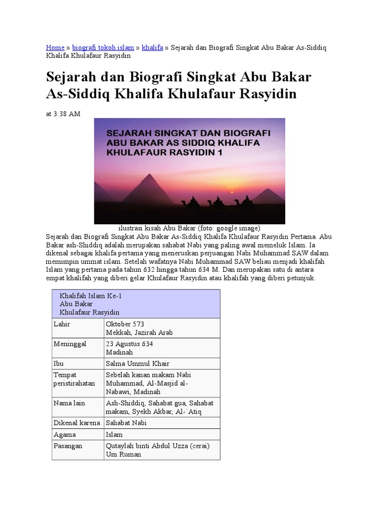 Dianggap penyelamat negara dan umat islam. Abu bakar wafat pada malam senin. Putri abu bakar, siti aisyah, dinikahkan dengan nabi. Learn vocabulary, terms and more with flashcards, games and other study tools. Sekilas tentang khalifah abu bakar.