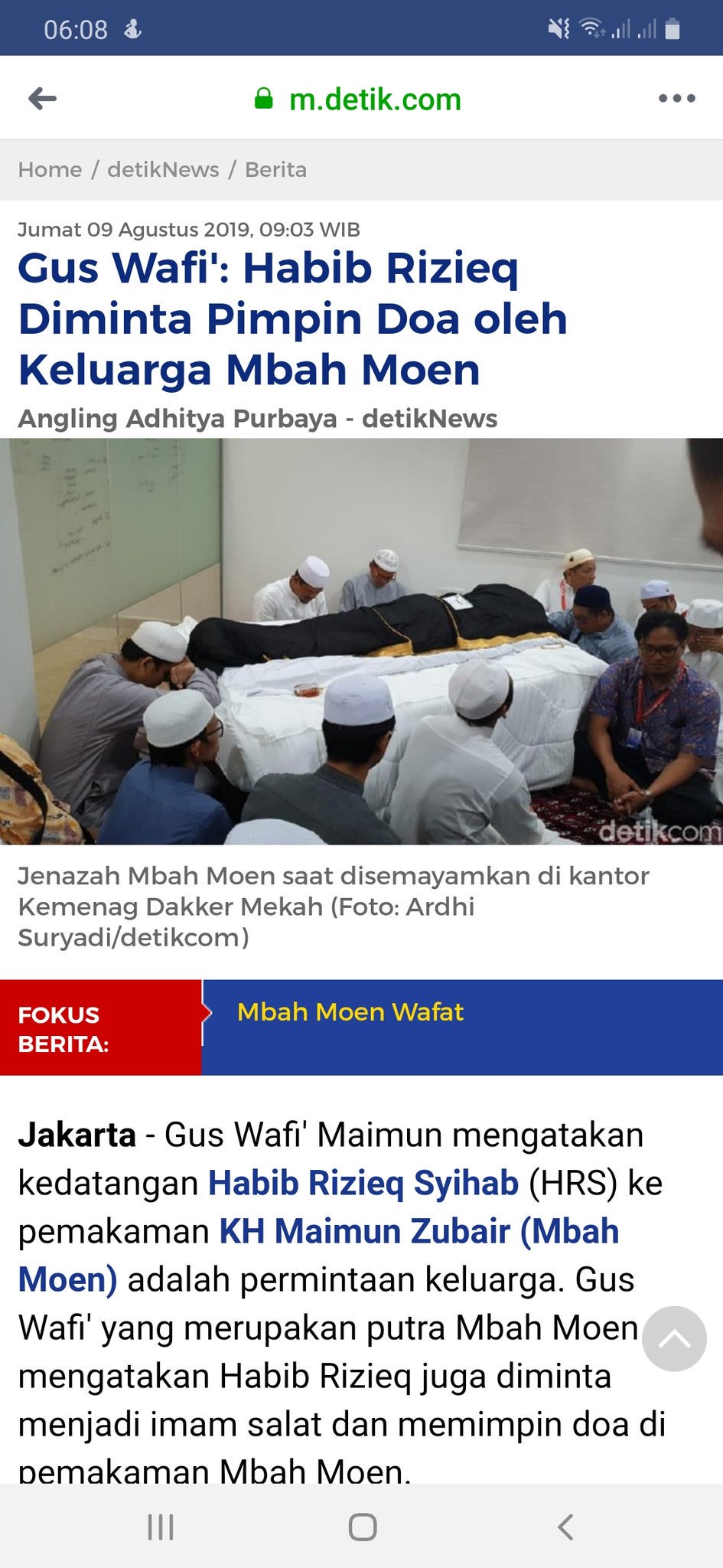 Kedatangan hrs memang atas permintaan keluarga mbah moen, yakni gus najih.